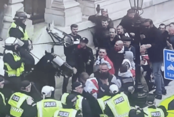 There were arrests as so-called 'patriots' assaulted emergency workers and innocent animals during a march.