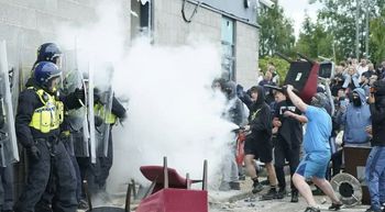 Ten police officers injured and one unconscious after rioters target migrant hotel