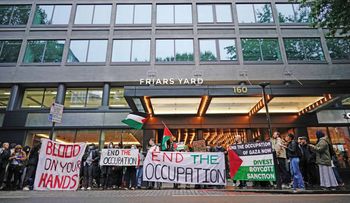 Demonstrators called for Labour to call for an immediate ceasefire in Gaza and for the UK to stop arming Israel.