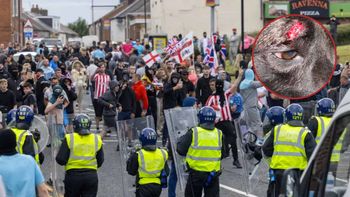 Three police dogs and six officers were injured during violent disorder in Tamworth and Stoke-on-Trent and seven police cars were damaged.