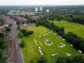 More than 30 caravans towed by a fleet of luxury cars and 4x4s pitched up near the iconic stadium causing a headache for officials