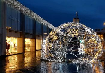 Massive light-up baubles were smashed in the centre of a busy shopping district after kids were spotted using them as a climbing frame.