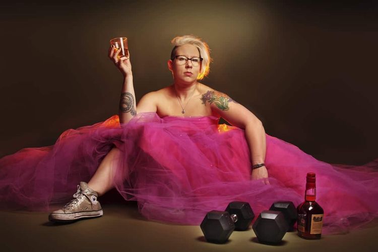 Waiting in the Princes Street sun for a nearby show to start, basking on a patch of grass while serenaded by a pitch-perfect violinist (what treats you offer us in August, Edinburgh, what treats), I flicked through a fringe magazine and chanced upon the back of Abigoliah Schamaun, in a gorgeous massive dress with impressive tattoo and half-shaved, half-quiffed hair do. I skim-read the words on Namaste, Bitches, because instinct had already kicked in by then; the other show was ditched and I wandered to Cowgate’s atmospheric Underbelly venue instead.