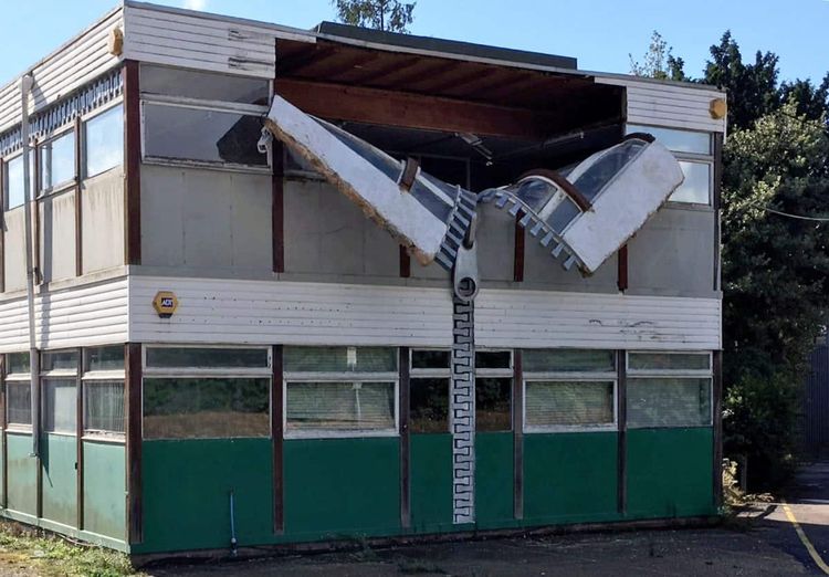 Huge zippers have been installed on the front and back of the building, in Ashford, Kent, giving the impression the building can be completely opened up.