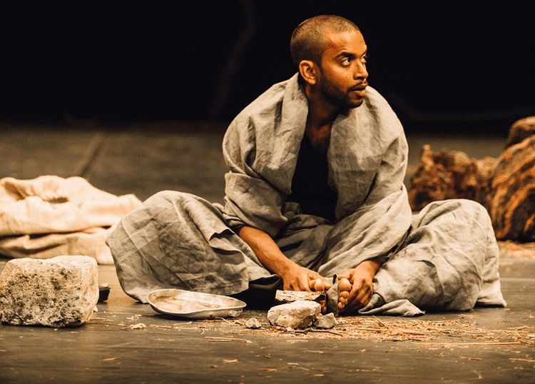 It’s a tough call to stop and look at one’s self and impart an internal reckoning after committing any kind of wrongdoing. Even tougher to “repair” in a calm and objective manner. Hiran Abeysekera’s Mavuso shows us this in minute detail. He has murdered his own father for sleeping with his sister Nadia, whom he himself lusts after. His uncle Ezekiel understands that society’s penitentiary system is corrupt and passes a graver punishment. Mavuso must sit outside a prison and meditate on his crime. Anyone else faced with members of their family committing such atrocities would surely crack. Western societies would demand justice and Hervé Goffings’ Ezekiel would have a breakdown and point his finger, like David Violi’s gnarled tree boughs, heavenward for answers. But this is a spiritual enquiry, asking serious questions about the appropriate responses to such a crime. To this effect, Goffing’s Ezekiel has a calming energy as soon as he enters the stage. His two feet are planted firmly on the ground, yet he walks as if he is walking on air. Not so Abeysekera’s Mavuso, who drags himself around as if he is Charon ferrying himself across the Styx. But, it is not that Ezekiel and Kalieaswari Srinivasan’s Nadia are not emotionally affected. In an approach perhaps alien to our society, they both suffer and support Mavuso. Before he is served his sentence, Ezekiel and Mavuso hold onto each other and a log which Nadia also caresses. Even in punishment Mavuso will not be left alone-Ezekiel and Nadia are not disconnected from him, but more bound.