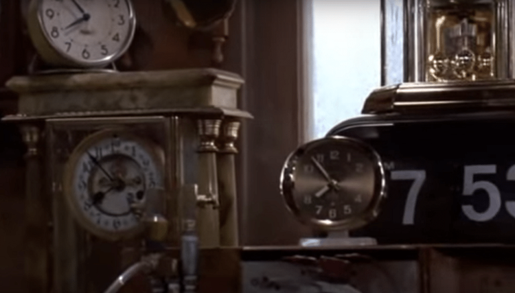 The clocks and the machine that serves Einstein his dog food show us the kind of person Doc Brown is; intelligent, inventive and not a little obsessive, but also establishes that he’s not been home for a few days, simply by the fact that the dog food bowl is overflowing. All of this is set up before we’ve seen, let alone heard any dialogue from, either of the film’s main characters. It’s a brilliant, artful piece of storytelling in a near perfectly structured film.