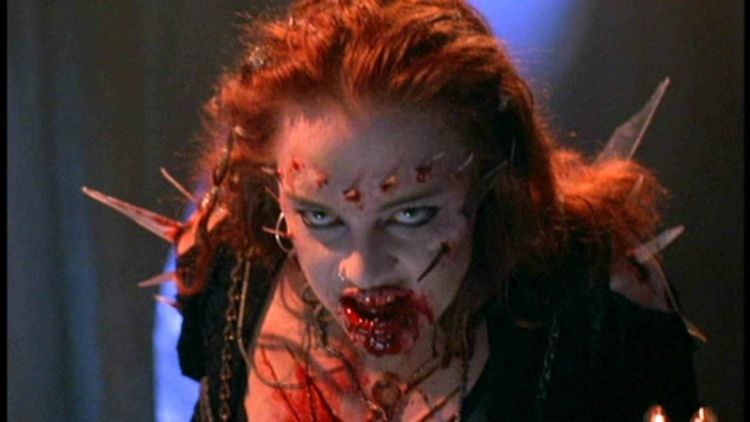 Zombie films are not usually reknowned for complex character motivations, interesting psychology or great acting, but Return Of The Living Dead 3 at least aspires to all of these qualities. The screenplay deals particularly interestingly with Julie’s hunger. Because her brain was intact and she was brought back quickly, Julie has all of her mental faculties, meaning that she understands and can express what is happening to her as more and more of her mind gives over to pure instinct and hunger. Melinda Clarke brings surprising depth to the role, we get a real sense of Julie losing control of her own mind, while being disgusted with the process and her urge to eat people. As the cravings grow worse, Julie learns that pain can keep them at bay for a short time and cuts and otherwise injures herself in an attempt to stave off the pain of the hunger and to keep her mind her own.