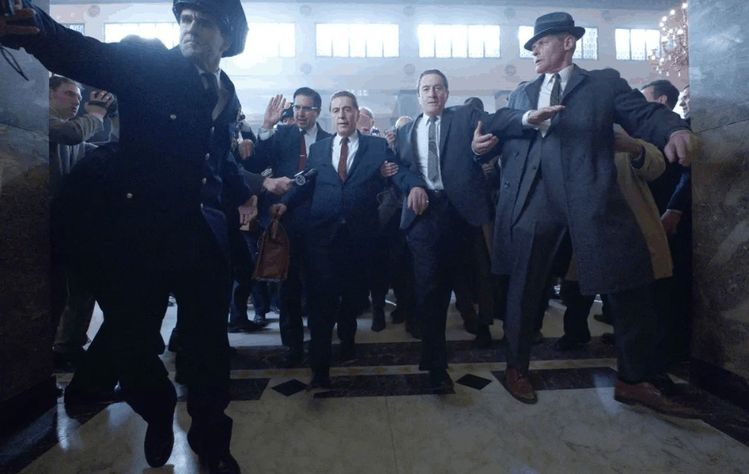 The production values to the piece are excellent, able to ground the work in some of the most authentic recapturing of the American 60s put on screen. The facial CGI may be called a middling success, with these men looking as they did decades ago, though De Niro never really acts like a young man. In one particular scene where he beats up a butcher, no amount of technical wizardry can hid his creaking physicality.