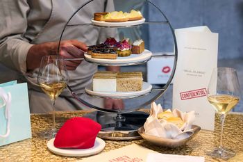 Enjoy sandwiches cut with striking precision, British scones and bright red French berets!