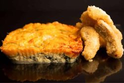 Deep Fried Hake Strips with Creamy Zucchini Bake