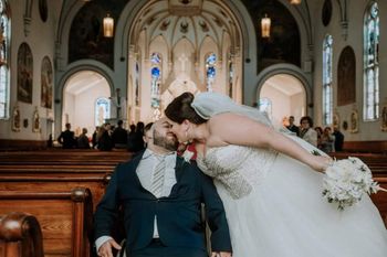 Cerebral palsy sufferer Justin Boisvert, 30, couldn’t hold back the tears as bride Sabrina Raposo, 27, walks into church