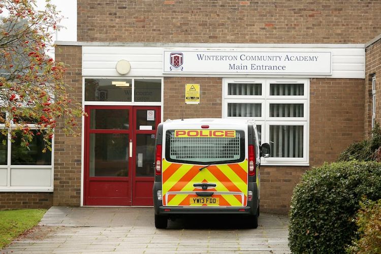 Police swooped on Winterton Community Academy in Winterton, North Lincs., this morning after reports of the stabbing just as the school day was starting.