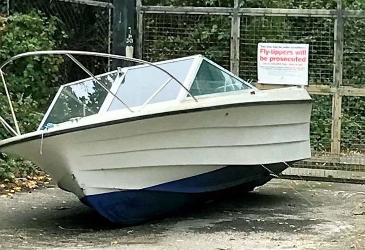 This unbelievable picture captured the ultimate fly-ship as ‘naughty’ sailors apparently abandoned their ride in front of a no fly-tipping sign.