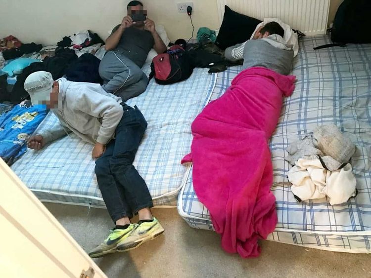 The house was lined with mattresses including in the kitchen and back garden where officers identified a sleeping area under a canopy with no protection against the cold.