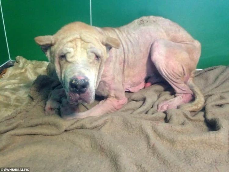 Kenny was close to death when he was found cruelly dumped on a residential street, with people thinking he might be a wrinkly Shar-Pei.