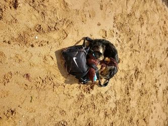 And horrified investigators think the poor dog was still alive when it was tied up and launched into the sea.