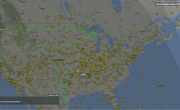 Live flight data of a Boeing 797 shows it is drawing a huge Dreamliner across the United States of America.