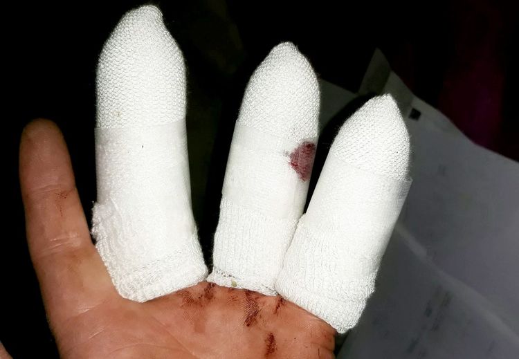 “It was about five days after my injury that my hand was finally stitched up.