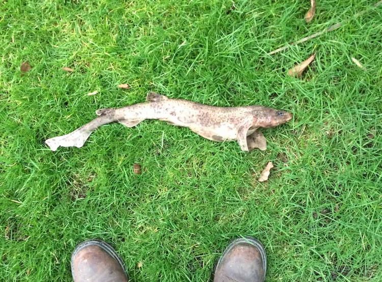 This is the moment a man found a SHARK in his back garden after it fell from the sky while he made a cup of tea.