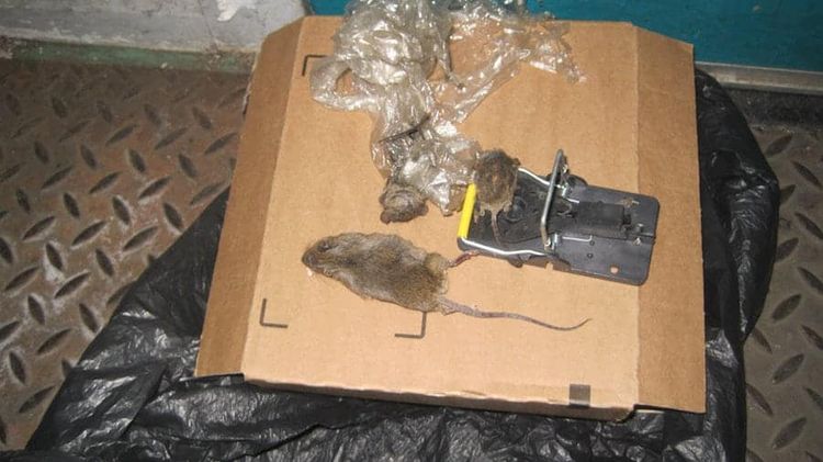 Pictures taken by health inspectors shows dead rats caught in traps and chewed bags of food.