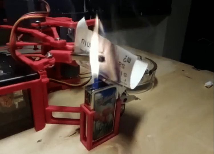 A robot has been designed that automatically prints Trump’s tweets, places them over a lighter and transforms them in to ash.