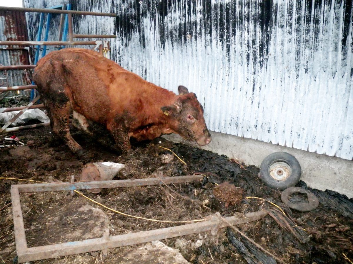 “Living cattle with no access to food and water were sharing a barn with dead cattle.