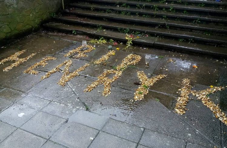 The small memorial has been in place since the weekend, although it is likely council staff will soon remove the tribute.