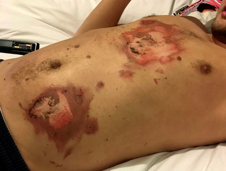 “It was the most painful thing you could ever imagine. My clothes burnt onto my chest and my skin was completely burnt.