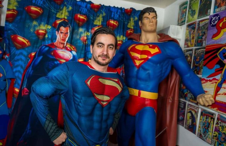 Marco Zorzin’s collection started seven years ago with some small metal figurines and has expanded over to include posters, clothing, action figures and a 6ft 10″ tall statue of Superman.
