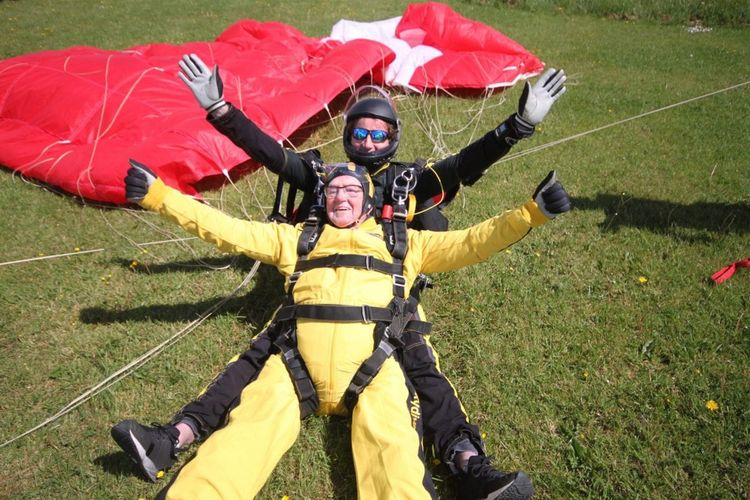 The great-granddad jumped with ten other people, including three generations of his family and the doctor who signed him off.