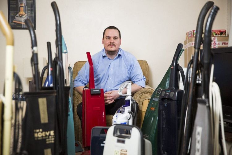 A 38-year-old man has no excuses for not cleaning his flat – after amassing a collection of 300 vacuum cleaners. Addict Steve Cook has been collecting vintage vacuums since he was three-years-old. Collector Steve estimates he has spent around £10,000 on the haul and he’s now run out of places to store the hoovers in his tiny one-bed flat.