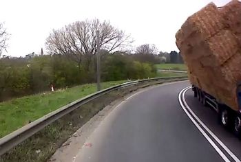 Dramatic dash-cam footage captured the terrifying accident which took place on the A17 in Newark, Notts., at 9am on Tuesday (28/3). It shows the HGV transporting hay bales coming around a corner before it starts to lean into the path of the oncoming Mid UK Recycling truck as it starts to overturn. Tonnes of bales of gate can then be seen spilling down in front of the camera as the offending lorry comes to precariously rest against the other vehicle...