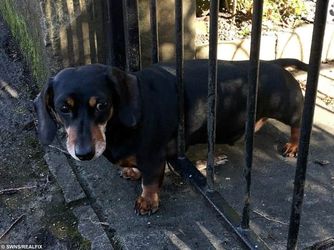 A sausage dog that got stuck in a railing outside its home for half an hour had to be saved by firefighters. Desperate dachshund Milo was running around in the garden while waiting for owner Sarah Jane Thompson when its long body got stuck in the garden gates. Sarah was putting her six-week-old daughter into her pram ahead of a walk in the sunshine on Monday when over-excited Milo lodged itself between the garden and the street. The panicked dog...