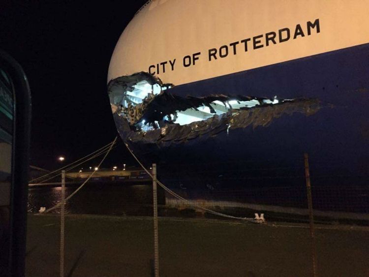 Ship pilot looked out of wrong window causing horrific damage to transporter ship
