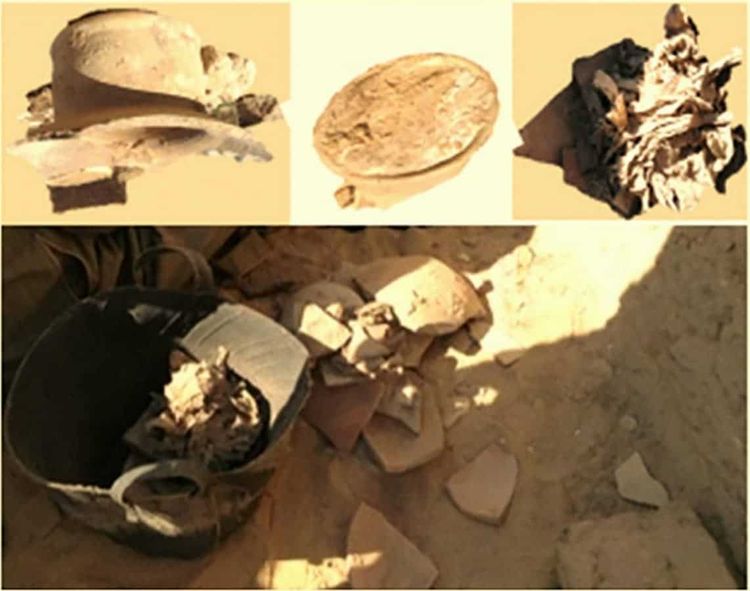‘One of these contained a solidified whitish mass, while a canvas fabric which might have covered it or used for its preservation was found in one of the fragments of the jar.