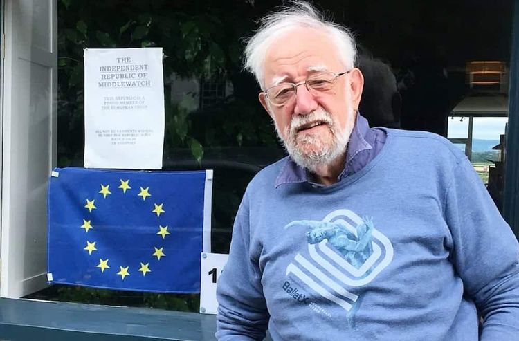 A poster in his window reads ‘The Independent Republic of Middlewatch. This Republic is a proud member of the European Union.