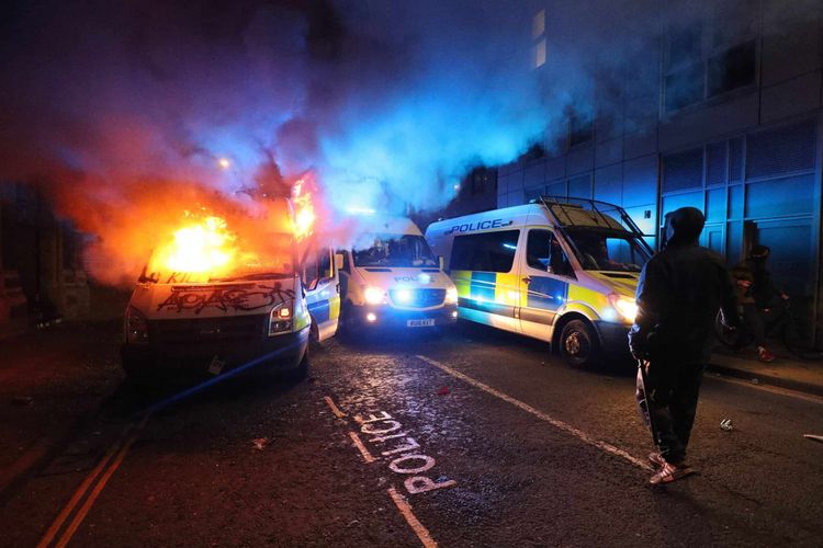 Sunday night’s demonstrations saw 21 officers injured, police vehicles set ablaze and a police station’s windows smashed in Bristol.