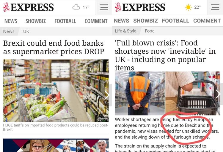 Reports on fishing, supermarkets and farming were also hilariously rebuked by the very same paper in a long list of hilarious self-owns.