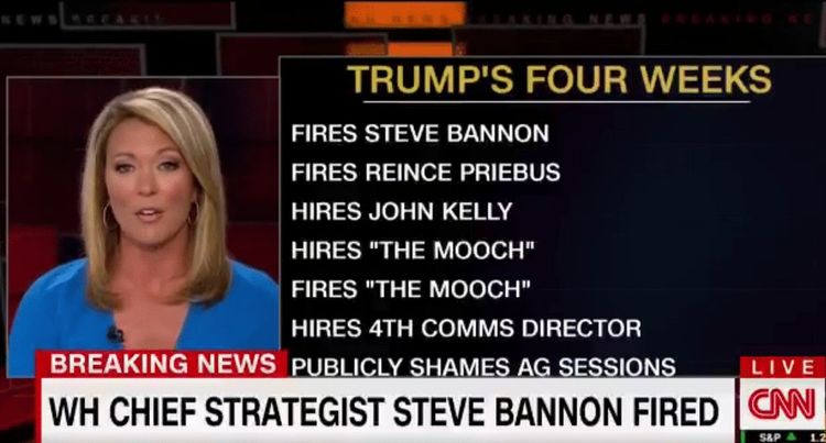 But we mustn’t let Bannon camouflage the procession of departures over the last month as he joins Reince Priebus, Anthony Scaramucci and others on the White House conveyor belt.