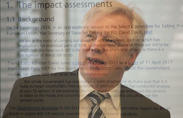 The Brexit Secretary was today forced to admit that the government has not assessed the impact of Brexit for different sections of economy to the EU select committee.