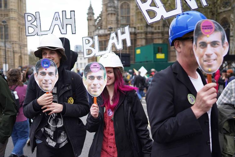 Many people also wore fancy dress, including the distinctive red-robed army of XR protesters who frequently turn up to the protests, while others wore masks depicting the King, Prime Minister Rishi Sunak, and various animals.