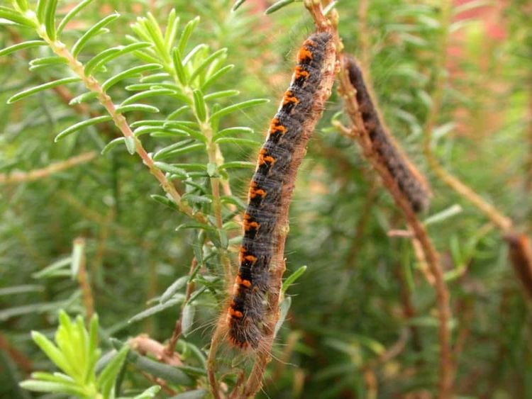 “This is a caterpillar of the oak eggar moth which eats heather and bilberry so it is normally hidden in the undergrowth, not at the top of plants.”
