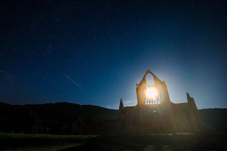 Pictures taken from Tintern Abbey in Monmouthshire show the moon perfectly captured in the top window of the remains.