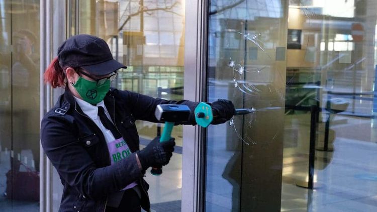 ? NEW: Extinction Rebellion smash windows of Barclays HQ with hammers and chisels