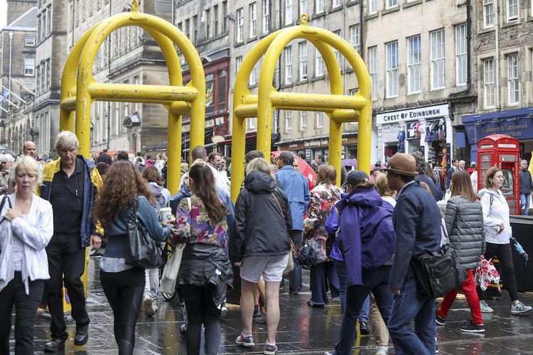 High security barriers installed on Edinburgh’s Royal Mile to prevent terrorists from ramming vehicles into pedestrians. The security measures have been introduced for the Edinburgh International Festival and Fringe after a request from Police Scotland and the city council. July 26 2017