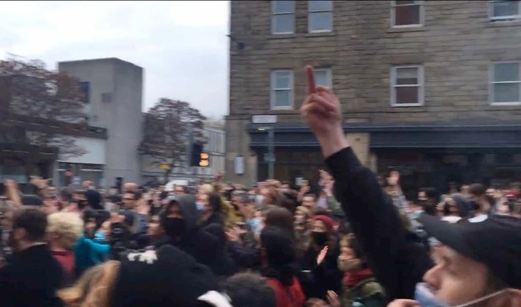 Over 200 students and other activists gathered after officials launched a raid to detain two people in the city’s Nicolson Square.