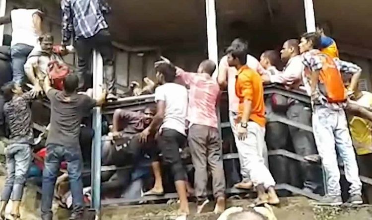 This is the horrific aftermath of a rush-hour stampede at a Mumbai railway station which has killed 27 people.