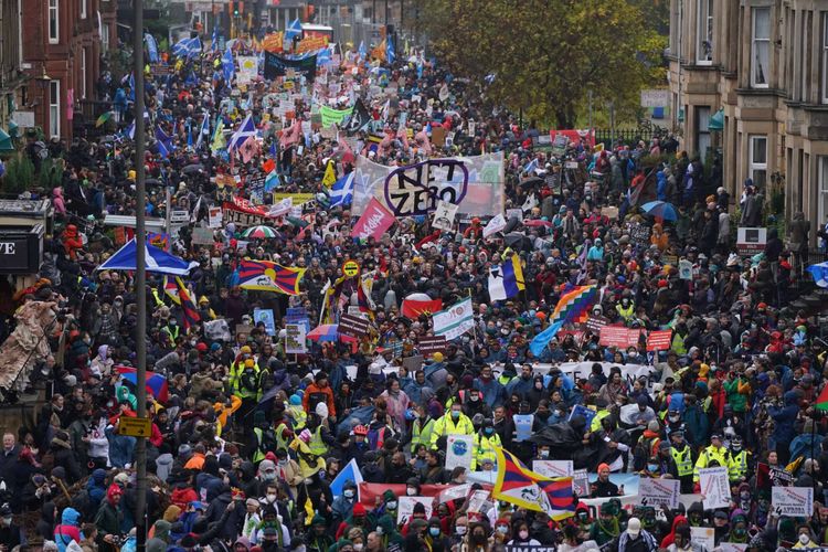 Tens of thousands of protesters have taken to the streets of the UK demanding stronger climate action from leaders in the midst of the Cop26 talks.