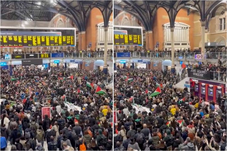 Footage posted on social media shows demonstrators clapping, cheering and chanting amid a sea of Palestinian flags as commuters made their way home through the crowds.