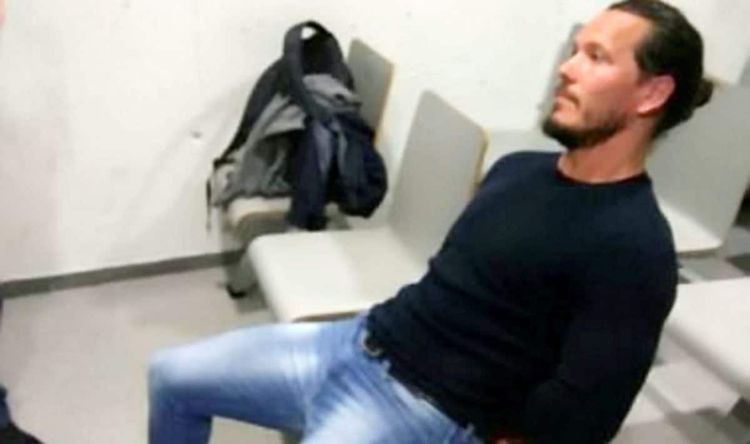 Armed cops swooped on Acourt as he left the Metropolitan Sagrada Familia Gym in Barcelona May 4.